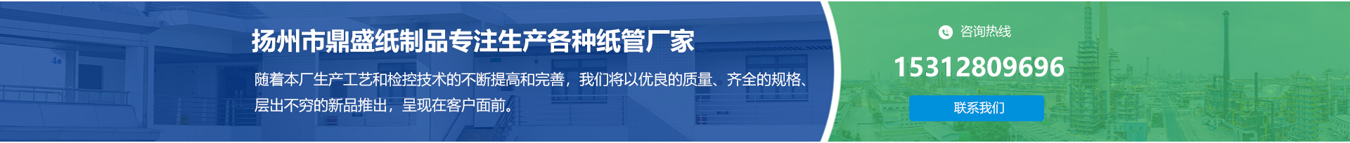 揚(yáng)州市鼎盛紙制品有限公司位于揚(yáng)州市寶應(yīng)縣曹甸工業(yè)園區(qū),地理位置優(yōu),環(huán)境宜人,交通便利。擁有國際生產(chǎn)設(shè)備與工藝,生產(chǎn)各種紙管,發(fā)展至今深得各地廠家的好評(píng)。
